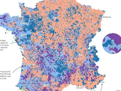 Τον τρόπο με τον οποίο ψήφισαν οι Γάλλοι πολίτες αλλά και τα κριτήρια που βάρυναν στην επιλογή τους σκιαγραφεί η εφημερίδα «The New York Times». Όπως αποτυπώνεται σε χάρτη της χώρας, η Μαρίν Λεπέν κέρδισε έδαφος σε περιοχές με υψηλή ανεργία και χαμηλούς μισθούς, εστιάζοντας στο πλαίσιο της προεκλογικής της εκστρατείας στην ανάσχεση των μεταναστευτικών ροών και την επαναδιαπραγμάτευση της σχέσης με την Ε.Ε.