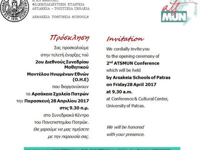 Τα Αρσάκεια Σχολεία Πατρών διοργανώνουν το 2ο Διεθνές Συνέδριο Προσομοίωσης των συνεδριάσεων των Ηνωμένων Εθνών από 27 έως 30 Απριλίου 2017.