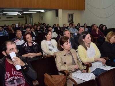 Συνάντηση με τους εργαζόμενους προγράμματος Κοινωφελούς Εργασίας, που προσλήφθηκαν με 8μηνη σύμβαση και απασχολούνται στον τομέα της Παιδείας, είχαν σήμερα ο Δήμαρχος Πατρέων, Κώστας Πελετίδης και ο Αντιδήμαρχος Παιδείας και Αθλητισμού, Ανδρέας Αθανασόπουλος, στο Μέγαρο Λόγου και Τέχνης.Ο Δήμαρχος καλωσόρισε τους εργαζόμενους, επαναλαμβάνοντας πολλές φορές στην ομιλία του τη φράση «χαιρόμαστε που είστε εδώ κοντά μας».
