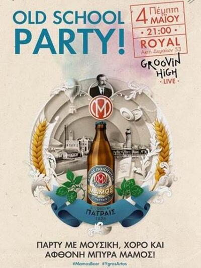 Η Πατρινή μπύρα «Μάμος», που κουβαλά ιστορία από το 1876 και πρόσφατα επανακυκλοφόρησε και επαναδραστηριοποιήθηκε δυναμικά, διοργανώνει την προσεχή Πέμπτη 4 Μαΐου 2017, ένα πάρτι με old school διάθεση, όπως αναφέρει η πρόσκληση και μαζί πολλή μουσική, χορό, εκπλήξεις και, φυσικά, άφθονη μπύρα ή για την ακρίβεια ζύθο ποιότητας όπως και είναι το σήμα κατατεθέν της μπύρας Μάμος.