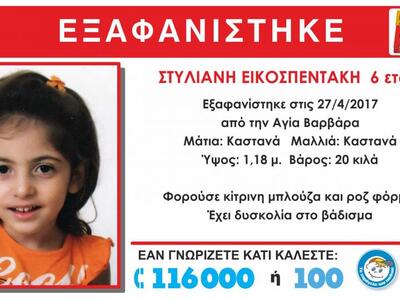 «Στις 27/04/2017, τις πρώτες πρωινές ώρες, εξαφανίστηκε από την Αγία Βαρβάρα, η Εικοσπεντάκη Στυλιανή, 6 ετών.