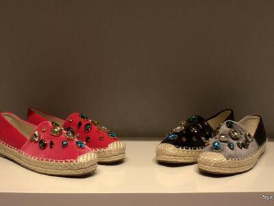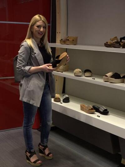 Βασισμένη στο design που επικρατεί στο εξωτερικό σε φόρμες, υλικά και διάκοσμο, η εταιρεία διαθέτει μεγάλη ποικιλία σε εσπαντρίγιες, άλλες κλειστές και μίνιμαλ με χαμηλούς ή διπλούς πάτους, άλλες πιο θηλυκές με τυλιχτά κορδονάκια και άλλες πολύ εντυπωσιακές, στολισμένες με κρύσταλλα ή ανάγλυφα λουλούδια. Πάρα πολλά flatforms, από βελούδινα πέδιλα μέχρι καθημερινά νεανικά σανδάλια, αλλά και τα νέα trendy «μπαλαρινάκια» με ψηλούς πάτους και κορδέλες, θα τα βρείτε όλα εδώ. Είδαμε επίσης χαμηλά γοβάκια γεμάτα λαμπερές μαργαρίτες και αστραφτερά sneakers.