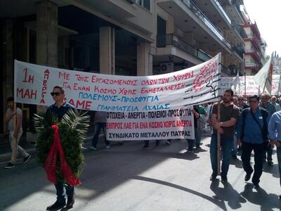 Με κεντρικό σύνθημα «Εργατιά μπροστά γκρέμισε μνημόνια και αφεντικά», το ΠΑΜΕ Πάτρας διοργανώνει την Πρωτομαγιά συγκέντρωση στις 10:30π.μ.στην πλατεία Γεωργίου. Η Γραμματεία του Μετώπου σε ανακοίνωσή της καλεί το λαό να συμμετάσχει στην κινητοποίηση τιμής των εργατικών αγώνων.