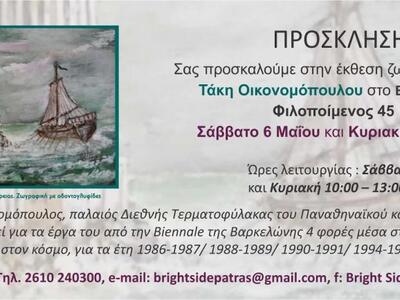 Η Έκθεση Ζωγραφικής του Τάκη Οικονομόπουλου θα πραγματοποιηθεί στο Bright Side, Φιλοποίμενος 45 το Σάββατο 6 και την Κυριακή 7 Μαίου.