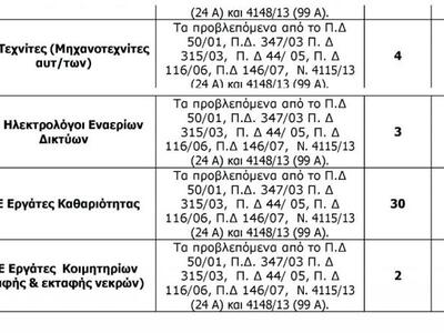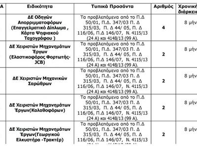 Οι θέσεις που ζητούνται ανά ειδικότητα, σύμφωνα με την απόφαση του Δημοτικού Συμβουλίου έχουν ως εξής: