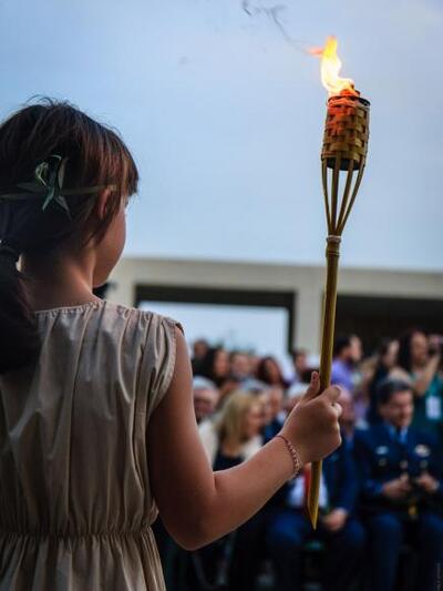 "Μεταφέροντας το μήνυμα της Εκεχειρίας από το σύμβολο του ελεύθερου πνεύματος και λόγου, στο σύμβολο των σύγχρονων Ολυμπιακών Αγώνων, θυμίζοντας ότι η σημαντικότερη παρακαταθήκη του Ολυμπισμού αλλά και θεμελιώδης όρος για την διεξαγωγή των αρχαίων Ολυμπιακών Αγώνων ήταν η «Εκεχειρία».