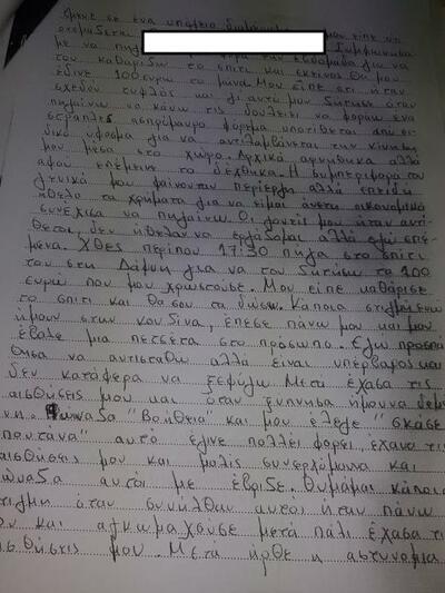Μετά έχασα τις αισθήσεις μου και όταν ξύπνησα ήμουν δεμένη. Φώναζα "βοήθεια" και μου έλεγε "σκάσε πουτ@ν@. Αυτό συνέβη πολλές φορές, έχανα τις αισθήσεις μου και όταν συνερχόμουν και φώναζα βοήθεια, αυτός με έβριζε. Θυμάμαι κάποια στιγμή όταν συνήλθα αυτός ήταν πάνω μου και αγκομαχούσε». Η κατάθεσή της κλείνει με μια επίσης συγκλονιστική φράση: «Θέλω να μπει φυλακή, με βίασε».