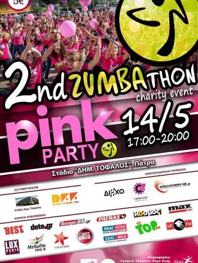 Το Άλμα Ζωής Ν. Αχαΐας σε συνεργασία με το DFF Studio, διοργανώνουν για δεύτερη συνεχή χρονιά στην Πάτρα το απόλυτο Fitness χορευτικό γεγονός. Το 2ο Zumbathon Party, θα πραγματοποιηθεί την Κυριακή 14 Μαΐου στις 17:00 – 20:00 στο Κλειστό Στάδιο Δημήτριος Τόφαλος.