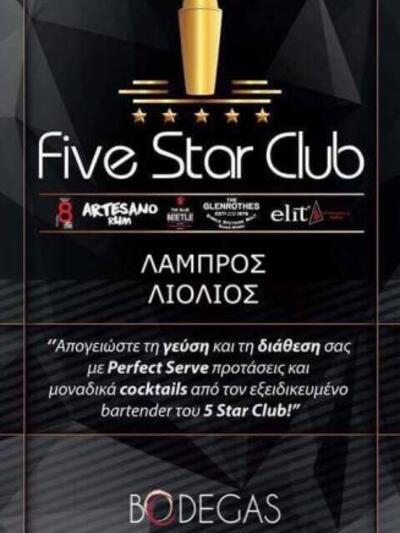 Απογειωστε το κεφι και την διαθεση σας με Perfect serve προτασεις και μοναδικα cocktails απο τον εξιδικευμενο bartender του five star club ΛΑΜΠΡΟ ΛΙΟΛΙΟ στους στυλατους χωρους του διασημου wine bar της ρηγα φεραιου!