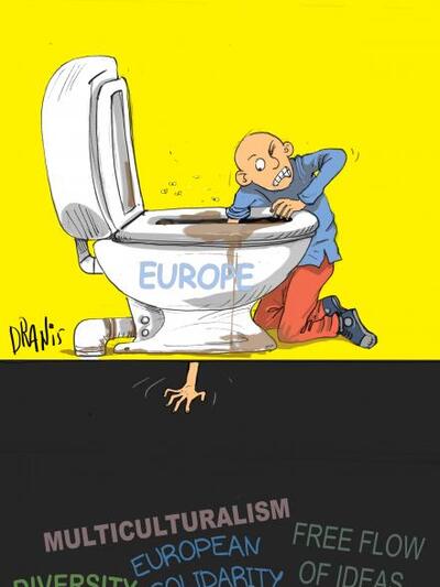 Έλληνες και Βρετανοί σκιτσογράφοι αποτυπώνουν την ταραγμένη Ευρώπη των καιρών μας