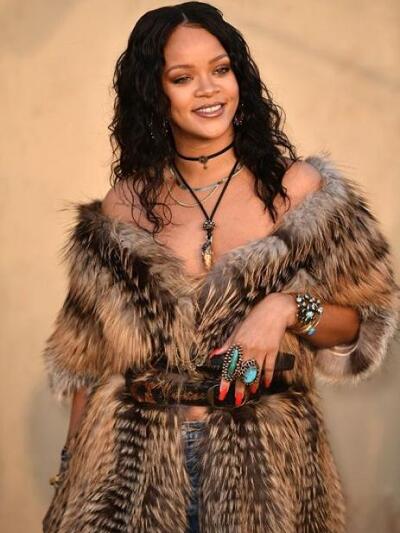 Η ποπ σταρ Ριάνα όπως το συνηθίζει ήταν η πρώτη που εμφανίστηκε με πρωτόφαντα ρούχα κατευθείαν από το σόου, δηλαδή με αντιπροσωπευτική γούνα και τζιν.