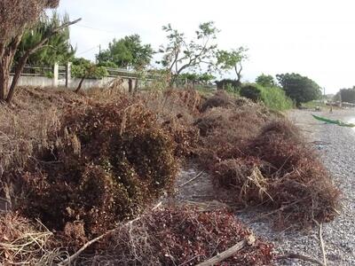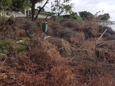 Κάτοικοι της περιοχής και λουόμενοι που θέλησαν να κάνουν εκεί το μπάνιο τους, είδαν την Κυριακή με μεγάλη τους έκπληξή την παραλία κατηλλειμένη από ξερά κλαδιά και αγριόχορτα.