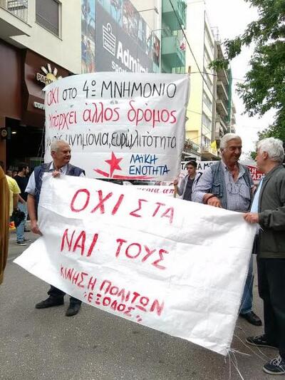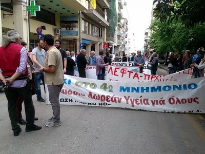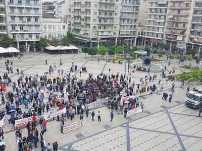 Η πρώτη συγκέντρωση πραγματοποιήθηκε στην πλατεία Εθνικής Αντίστασης, έξω από το εργατικό κέντρο και στην οποία συμμετείχαν, εργαζόμενοι στον ιδιωτικό και δημόσιο τομέα, άνεργοι, ελεύθεροι επαγγελματίες, φοιτητές, συνταξιούχοι κ.α. Όπως ανέφεραν μεταξύ άλλων οι ομιλητές, «λέμε όχι στις νέες μνημονιακές δεσμεύσεις, που φέρνουν απελευθέρωση των ομαδικών απολύσεων, περικοπές σε κύριες και επικουρικές συντάξεις και νέα φοροεπιδρομή στα εισοδήματα μισθωτών και συνταξιούχων».