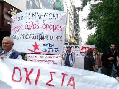 «Η Λαϊκή Ενότητα Αχαΐας οφείλει να ενημερώσει τον λαό της Αχαΐας για τα σημερινά τεκταινόμενα κατά την απεργιακή πορεία της Πάτρας. Η ΛΑΕ όπως έπραξε και κατά την πορεία της 1η Μάιου κάλεσε σε συγκέντρωση στην συμβολή των οδών Μαιζώνος και Κολοκοτρώνη, με σκοπό να κάνει ξεχωριστή πορεία από τις νεομνημονιακές και παλαιομνημονιακές δυνάμεις που ηγεμονεύουν στην διοίκηση του Εργατικού Κέντρου Πάτρας.
