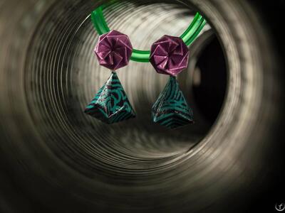 Σε μια ελεύθερη προσέγγιση της τεχνικής origami, το Paper Studio δουλεύει πάνω σε ευτελή υλικά όπως είναι το χαρτι και πειραματίζεται με τρισδιάστατες φορμες που αποκρυσταλλώνονται σε κοσμήματα και αξεσουάρ.