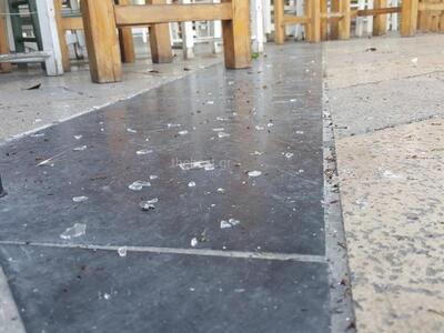 Μάλιστα το τζάμι προκάλεσε φθορές ακόμη και σε όχημα αυτοκινητιστή ΤΑΞΙ που ήταν σταθμευμένο στην πιάτσα της πλατείας.