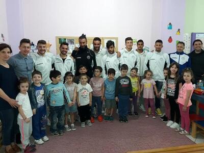 Οι ποδοσφαιριστές μας πέρασαν σχεδόν μισή ώρα με τους μικρούς φίλους τους, στους οποίους έδωσαν διάφορες χρήσιμες συμβουλές, ενώ απάντησαν και στις ερωτήσεις που είχαν ετοιμάσει για αυτούς και οι οποίες αφορούσαν στη ζωή και την καριέρα τους.