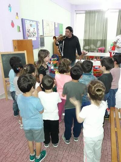 Αξίζει να σημειωθεί πως το «παρών» έδωσε και ο πρώην αντιπρόεδρος της ΠΑΕ Μάριος Βαλαβάνης, ο οποίος με την τρομπέτα του έδωσε άλλο «χρώμα» (μα και… ήχο!) στη σημερινή επίσκεψη στο συγκεκριμένο Νηπιαγωγείο, με την ιαχή «Παναιγιάλειος» να δονεί τη σχολική αίθουσα!