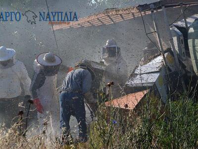 Σήμερα, η εικόνα είναι θεαματική. Εκατομμύρια μέλισσες στο σημείο του ατυχήματος και αρκετοί μελισσοκόμοι προσπαθούν να μαζέψουν ότι είναι δυνατόν και να ανοίξει ο δρόμος.
