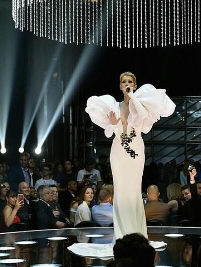 Η 49χρονη γαλλοκαναδέζα ερμηνεύτρια Σελίν Ντιόν με τη μαγευτική, διαπεραστική φωνή πρόβαλε στη σκηνή κάτω από έναν κυκλικό πολυέλαιο- κουρτίνα με μια τουαλέτα σαν λευκό γλυπτό που τα ξένα media παρομοίασαν με αμφίεση εξπρεσιονιστικού αγγέλου. Ηταν μια δημιουργία με βαθύ ντεκολτέ, μεταλλικό κέντημα και κυρίως εντυπωσιακά μανίκια του οίκου Stephane Rolland Couture. H Ντιόν που πέρυσι έχασε το σύζυγο και πυγμαλίωνά της, παραδέχθηκε πως η συγκεκριμένη, συγκινητική μπαλάντα και αξεπέραστο χιτ έπαιξε τεράστιο ρόλο στην εξέλιξη της καριέρας της και ήταν μεγάλη τιμή που το ξαναείπε στην τελετή. Ηταν μεγάλη ευκαιρία να γίνω κομμάτι του «Τιτανικού» μιας ταινίας που ο μύθος της θα συνεχιστεί και τις μελλοντικές γενιές» δήλωσε. Τραγουδώντας το κομμάτι, μια γιγαντοοθόνη έπαιζε τις πιο αντιπροσωπευτικές σκηνές με το Λεονάρντο ντι Κάπριο και την Κέιτ Γουίνσλετ με το κοινό να ζητωκραυγάζει.