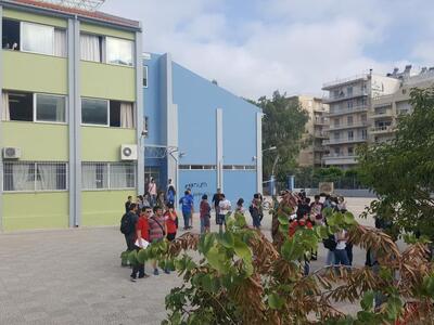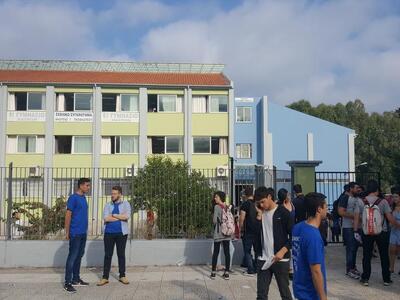 Στην είσοδο του σχολικού συγκροτήματος είχε πεταχτεί προεκλογικό υλικό. Στους τοίχους του σχολείου δεν είδαμε κολλημένες αφίσες - τουλάχιστον εως τις 09.00 το πρωί- κάτι που αποτελεί παράκληση και του δήμου καθώς πρόσφατα έχει βαφτεί - ανακαινισθεί η πρόσοψή του.
