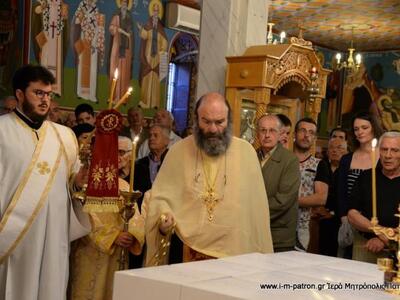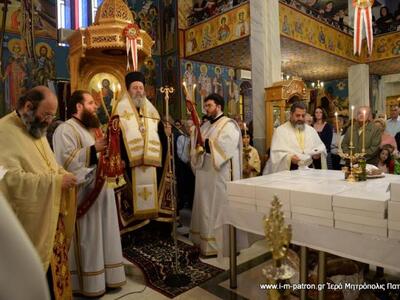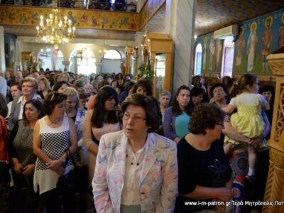 Ἀνήμερα, 25.5.2017, ἐτελέσθη ἡ Θεία Λειτουργία ὑπὸ τοῦ Σεβασμιωτάτου Μητροπολίτου Πατρῶν κ.κ. Χρυσοστόμου μὲ τὴν συμμετοχὴ πλήθους Λαοῦ.