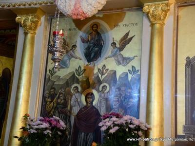 "Τὴν παραμονὴ τῆς ἑορτῆς, 24.5.2017, στὸν πανηγυρίζοντα Ἱερὸ Ναὸ Ἀναλήψεως τοῦ Κυρίου Ψαροφαΐου Πατρῶν, ἐτελέσθη ὁ Ἑσπερινὸς ὑπὸ τοῦ Θεοφιλεστάτου Ἐπισκόπου Κερνίτσης κ. Χρυσάνθου, ἐν πληθούσῃ Ἐκκλησίᾳ.