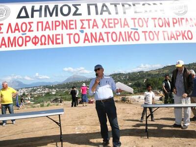 Απευθυνόμενος στους συγκεντρωμένους ο Δήμαρχος Πατρέων, Κώστας Πελετίδης, ανέφερε μεταξύ άλλων, ότι η Δημοτική Αρχή σήμερα, μαζί με το λαό, προχωρά στη διαμόρφωση ενός νέου Πάρκου, 150 στρεμμάτων, που θα γίνει το «μπαλκόνι» της Πάτρας.