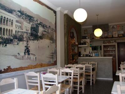 Με τα μαρμάρινα τραπέζια και τις λευκές ψάθινες καρέκλες, τις ασπρόμαυρες φωτογραφίες της παλιάς Πάτρας στους τοίχους, τη μουσική που σε «ταξιδεύει» σε μια άλλη εποχή, με παλιά λαϊκά, έντεχνα και φυσικά ρεμπέτικα.