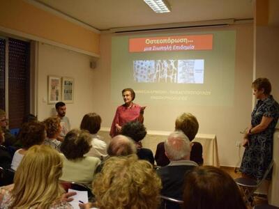Με μεγάλη επιτυχία πραγματοποιήθηκε η εκδήλωση με θέμα Οστεοπόρωση: η σιωπηρή επιδημία που διοργάνωσε η Εταιρεία Κοινωνικής Δράσης κ΄Πολιτισμού Κοινο_Τοπία www.koinotopoia.gr στον πολυχώρο της. Το θέμα παρουσίασε με αναλυτικό και εύληπτο τρόπο κάνοντας χρήση εποπτικού υλικού η ενδοκρινολόγος Αθανασία Αρμόνη Παναγιωτοπούλου.