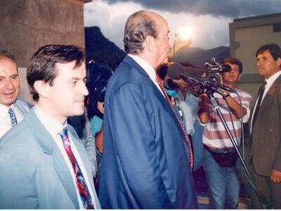 Από το γραφείο του βουλευτή Αχαΐας της ΝΔ, Νίκου Νικολόπουλου, ο οποίος και είχε πρωτοεκλεγεί βουλευτής ως υποψήφιος με τη ΝΔ του Κωνσταντίνου Μητσοτάκη, στις εθνικές εκλογές του Νοεμβρίου του 1989, λάβαμε ορισμένες ωραίες και συλλεκτικού χαρακτήρα φωτογραφίες όπου εικονίζεται ο εκλιπών τέως Πρωθυπουργός με τον κ. Νικολόπουλο και άλλα σημαντικά τοπικά στελέχη.