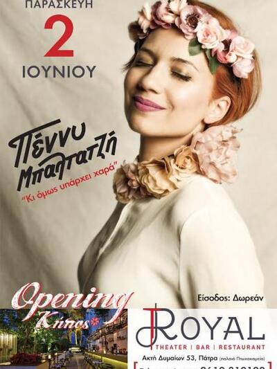 Αυτά θα εισπράξει το Πατρινό κοινό που θα βρεθεί την Παρασκευή 2 Ιουνίου 2017, στον κήπο του Royal – παλιό Πτωχοκομείο, στην Ακτή Δυμαίων 53, όπου η Πέννυ Μπαλτατζή θα παρουσιάσει τη διαδραστική παράσταση «Κι όμως υπάρχει χαρά».