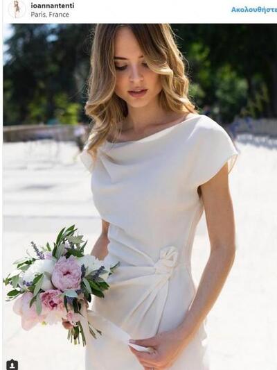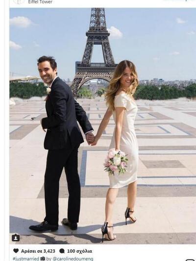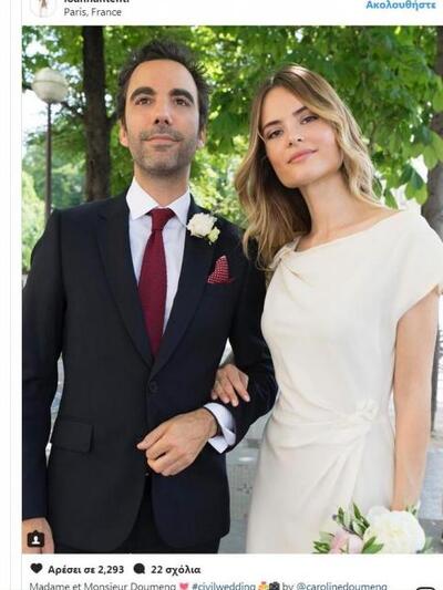 Αυτή τη φορά δε ντύθηκε νύφη για τις ανάγκες τις δουλειάς της αλλά για να παντρευτεί τον Ζαν Φιλίπ Ντουμένγκ στο Δημαρχείο του 16ου Διαμερίσματος του Παρισίου, με τον δήμαρχο και παιδικό φίλο του γαμπρού να τους ανακηρύσσει συζύγους.