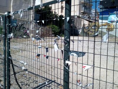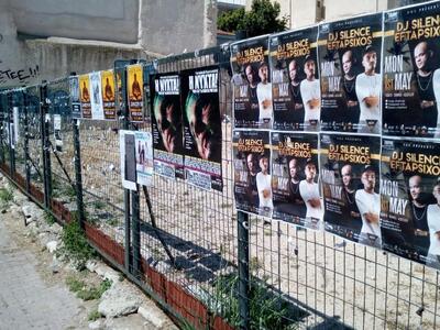 Μάρτυρες ενός άθλιου θεάματος γίνονται όσοι περνούν καθημερινά από το πάνω μέρος του πεζόδρομου της Γεροκωστοπούλου. Οι τοίχοι αλλά και τα κάγκελα που βρίσκονται στις δύο πλευρές του πεζόδρομου γεμίζουν από εκατοντάδες αφίσες τις οποίες κολλάνε, μαζικά διοργανωτές εκδηλώσεων.