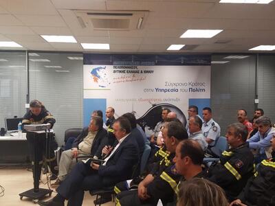 Ευρεία σύσκεψη όλων των εμπλεκομμένων υπηρεσιών και φορέων για την αντιπυρική προστασία, προκάλεσε την Τετάρτη το πρωί η αποκεντρωμένη διοίκηση Δυτικής Ελλάδας-Πελοποννήου και Ιονίων Νήσων. Τόσο οι εκπρόσωποι της τοπικής αυτοδιοίκησης όσο και της πυροσβεστικής κατέθεσαν τα εως τώρα δεδομένα τους αναζήτησαν λύσεις και τον καλύτερο δυνατό συντονισμό όλων των εμπλεκομμένων.