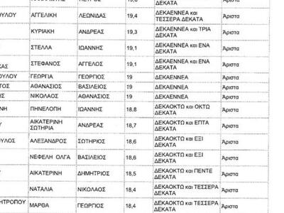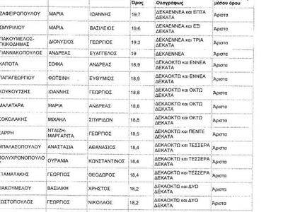Οι αριστεύσαντες του ΓΕΛ Ρίου ανά τάξη: