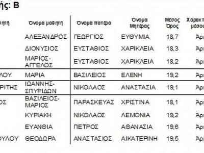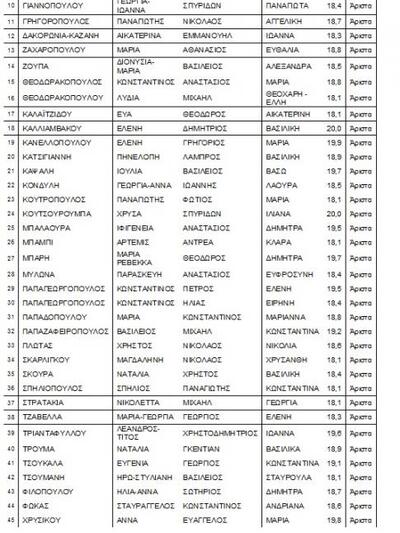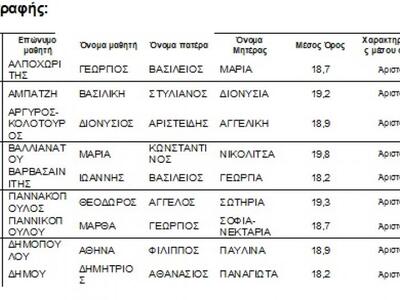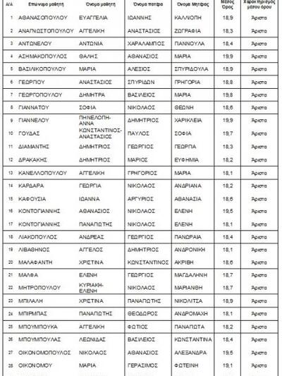 Ακολουθούν καταστάσεις ανά τάξη, με τους Αριστούχους του Σχολείου.