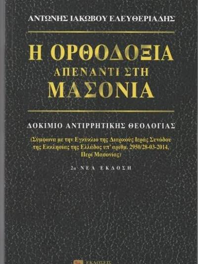 Το πρώτο όπως αναφέρει το σχετικό δελτίο Τύπου, είναι ένα δοκίμιο της αντιρρητικής θεολογίας με τίτλο «Η Ορθοδοξία απέναντι στη Μασονία», γραμμένο από τον κ. Αντώνη Ιακώβου Ελευθεριάδη, Δρ. Φιλολογίας και Θεολογίας. Φέρει την έγκριση της Διαρκούς Ιεράς Συνόδου της Εκκλησίας της Ελλάδος και είναι των εκδόσεων «Σύγχρονη Πέννα». Αναφέρεται σε όλες τις πτυχές της διδασκαλίας της μασονικής στοάς σε αντιπαράθεση με την Ορθόδοξη Θεολογία. Τιμάται στα 9 ευρώ.