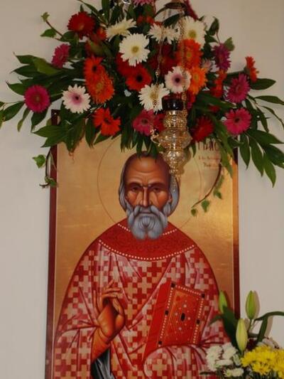 Το απόγευμα της 6ης Ιουνίου τελέστηκε Μέγας πανηγυρικός Αρχιερατικός Εσπερινός χοραστατούντος του Θεοφιλεστάτου Επισκόπου Κερνίτσης κ. Χρυσάνθου. Ο Θεοφιλέστατος μίλησε για το βίο του Αγίου και διά το παράδειγμά του εις τον κόσμον σήμερα.