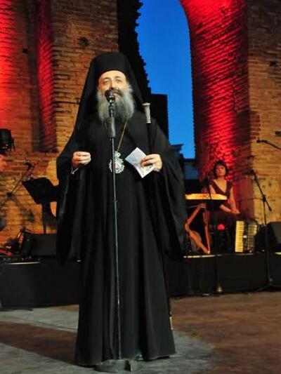 Στην πρώτη παράσταση, τον Σεβασμιώτατο εκπροσώπησε ο πανοσιολογιώτατος Αρχιμ. π. Ειρηναίος Σωτηρόπουλος, υπεύθυνος Νεότητος της Ιεράς Μητροπόλεως Πατρών, ο οποίος μετέφερε τις πατρικές ευχές του Σεβασμιωτάτου.