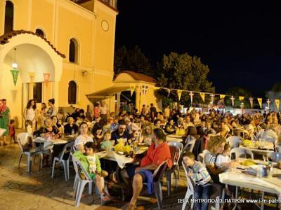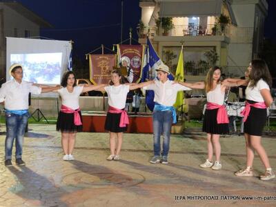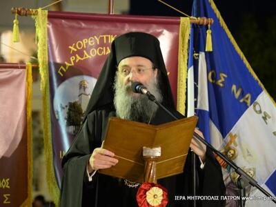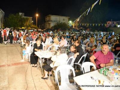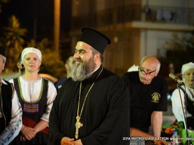 Τὴν ὡραιότατη αὐτὴ ἐκδήλωση ἐτίμησε μὲ τὴν παρουσία του ὁ Σεβασμιώτατος Μητροπολίτης Πατρῶν κ.κ. Χρυσόστομος, ὁ ὁποῖος ἐπήνεσε τόσο τὸν προϊστάμενο τοῦ Ἱεροῦ Ναοῦ, Αἰδεσιμολογιώτατο Πρωτοπρεσβύτερο π. Χαράλαμπο Παπαδόπουλο καὶ τοὺς ἐκλεκτοὺς συνεργάτας του, ὅσο καὶ τὰ ἑκατοντάδες παιδιὰ τῶν διαφόρων συλλόγων τῆς περιοχῆς ποὺ χόρεψαν μὲ ὑπηρηφάνεια καὶ λεβεντιά, ἐνδεδυμένα μέ τίς ἐθνικές φορεσιές.