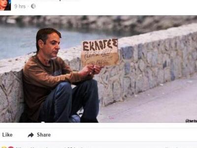 Μια ανάρτηση της δημοσιογράφου της ΕΡΤ Κατερίνας Ακριβοπούλου στον προσωπικό της λογαριασμό στο facebook ήταν ικανή να εξοργίσει το κόμμα της ΝΔ. Η δημοσιογράφος ανέβασε μια φωτογραφία, προϊόν φωτομοντάζ, που δείχνει τον Κυριακό Μητσοτάκη να επαιτεί για εκλογές.