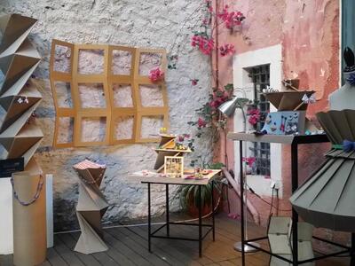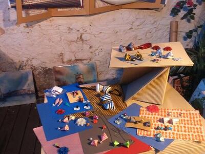 Κάνοντας μια βόλτα στην έκθεση εντυπωσιαστήκαμε από τα κοσμήματα της Αναστασίας Ιωαννίδη η οποία δημιουργεί κοσμήματα από… χαρτί σε μια ελεύθερη προσέγγιση της τεχνικής origami.