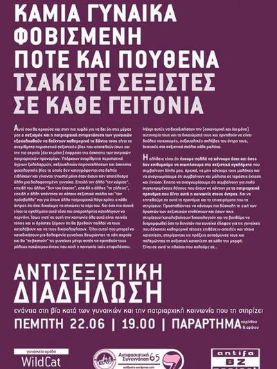 Η διαδήλωση καλείται απο την γυναικεία ομάδα Wildcat, το antifa BZ project και την αντιφασιστική συνεννόηση 65 (ΑΣ65).