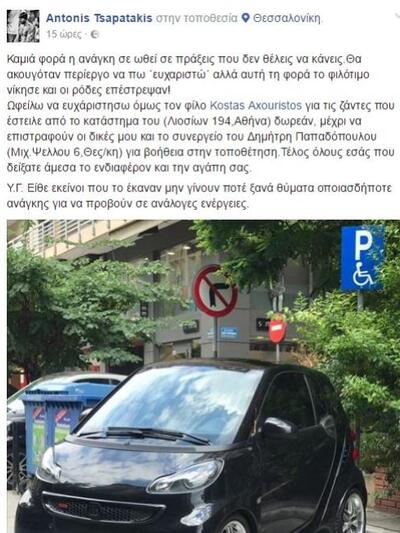 «Καμιά φορά η ανάγκη σε ωθεί σε πράξεις που δεν θέλεις να κάνεις. Θα ακουγόταν περίεργο να πω ´ευχαριστώ´ αλλά αυτή τη φορά το φιλότιμο νίκησε και οι ρόδες επέστρεψαν!