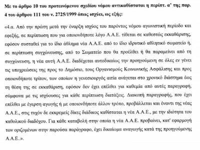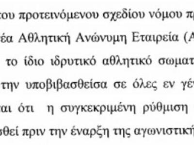 Η τροπολογία αναφέρεται ξεκάθαρα στις ανώνυμες αθλητικές εταιρίες που υποβιβάζονται, ιδρύονται ή συγχωνεύονται και αποκτούν νέο ΑΦΜ, δεν θα φέρουν τις υποχρεώσεις της προηγούμενης ΑΕ προς το Δημόσιο, τους Οργανισμούς Κοινωνικής Ασφάλισης και προς οποιονδήποτε τρίτο.