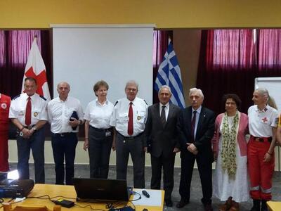 Τις θερμές ευχαριστίες του Ελληνικού Ερυθρού Σταυρού προς το Δήμο Καλαβρύτων, εξέφρασε, σήμερα, Παρασκευή 23 Ιουνίου 2017, το πρωί, κατά την επίσκεψή του στα Καλάβρυτα, ο Πρόεδρος του Ελληνικού Ερυθρού Σταυρού, Δρ. Αντώνης Αυγερινός, για την πολύτιμη συμβολή του Δήμου Καλαβρύτων, με τη φιλοξενία στο κτίριο της πρώην Μαθητικής Εστίας Καλαβρύτων, εκατό (100), περίπου, Σαμαρειτών, Διασωστών και Ναυαγοσωστών, για την πραγματοποίηση εκπαιδευτικών σεμιναρίων. Όπως αναφέρει σχετική ανακοίνωση: