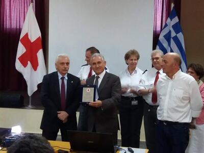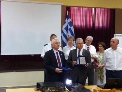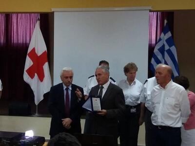 "Ο Δήμαρχος Καλαβρύτων, Γιώργος Λαζουράς, και ο Πρόεδρος του ΕΕΣ, Δρ. Αντώνης Αυγερινός, παραβρέθηκαν, σήμερα, το πρωί, στην έναρξη του εκπαιδευτικού μαθήματος των Σαμαρειτών Διασωστών και Ναυαγοσωστών, όπου σε μία λιτή τελετή, ο Πρόεδρος του ΕΕΣ απένειμε στο Δήμαρχο Καλαβρύτων, Γιώργο Λαζουρά, και στο βοηθό Δημάρχου, Θύμιο Τζόβολο, ευχαριστήρια τιμητική πλακέτα, για τη συμβολή του Δήμου Καλαβρύτων, στην πραγματοποίηση της 5ης και της 9ης Πανελλήνιας Εκπαίδευσης Εκπαιδευτών του Τομέα Σαμαρειτών, Διασωστών και Ναυαγοσωστών του Ελληνικού Ερυθρού Σταυρού.