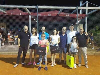 Φινάλε για το τουρνουά «June Doubles» με μικτά ζευγάρια στο πολυσύχναστο Golden Tennis Club του Κώστα Σπανού στον Καστελόκαμπο το βράδυ της περασμένης Παρασκευής. Μετά από «μάχες» δυο εβδομάδων για 33 ντουέτα, έγινε ο τελικός αγώνας με μεγάλη και άκρως εκδηλωτική «κερκίδα», αναδεικνύοντας νικητές το ζεύγος Γιάννη Αθανασάτου- Βασιλικής Αλμπανίδου που άφησαν το δίδυμο Πάνου Μέξα –Τζούλιας Ροδοπούλου στη δεύτερη θέση.
