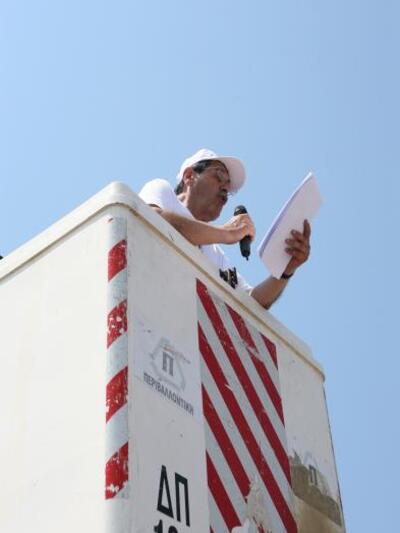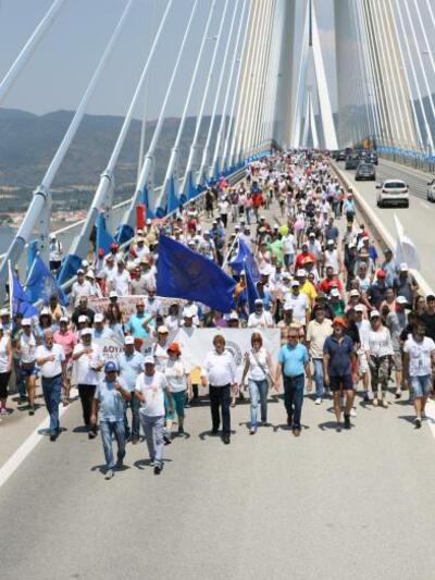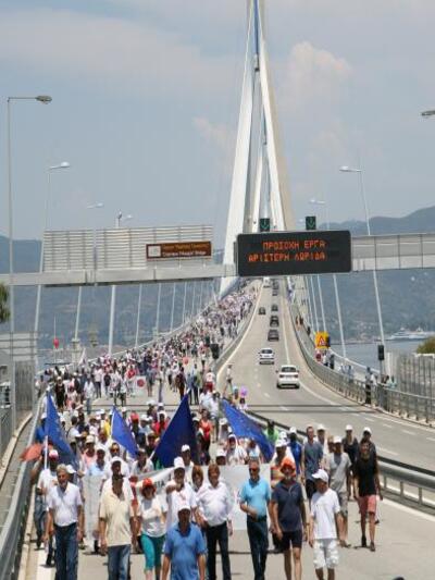 Όταν η πορεία έφτασε στη γέφυρα Ρίου – Αντιρρίου, ο δήμαρχος ανέβηκε στο καλάθι του οχήματος και τόνισε ότι «απαιτούμε άμεσα μέτρα προστασίας των ανέργων και των οικογενειών τους, κανένας άνεργος χωρίς επίδομα ανεργίας, κανένας πλειστηριασμός σε σπίτι λαϊκής οικογένειας, κανένα σπίτι χωρίς φως, νερό, σταθερό τηλέφωνο».